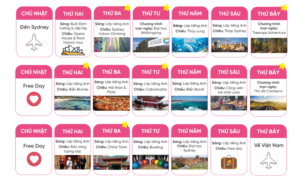 NỘI DUNG CHƯƠNG TRÌNH TRẢI NGHIỆM HỌC TẬP & VĂN HÓA ÚC
