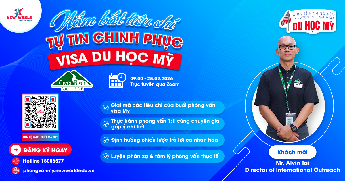 => Đăng ký ngay hôm nay tại https://phongvanmy.newworldedu.vn để sẵn sàng vượt qua vòng phỏng vấn Visa và đến gần hơn với giấc mơ học tập tại Hoa Kỳ.