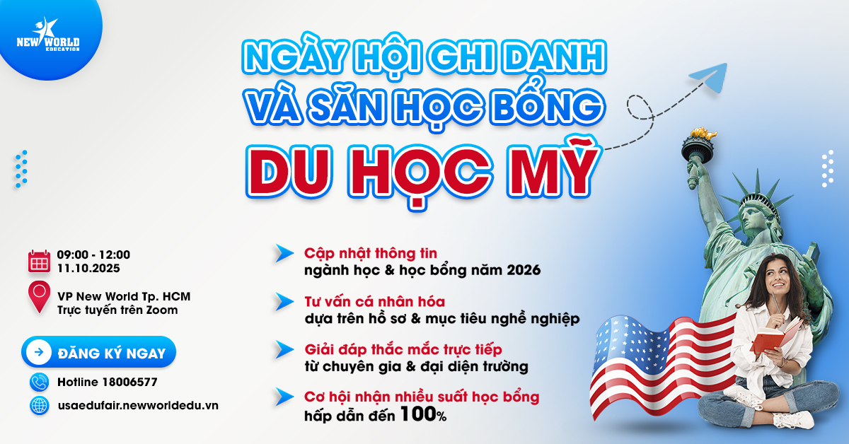 New World Educationđại diện tuyển sinh trực tiếp nhiều trường THPT, Cao đẳng, Đại học Mỹ, Canada, Anh, Úc, Singapore, NZ, Philippinestại thị trường Việt Nam. Sinh viên quan tâm đến Chương trình học và các chương trình ưu đãi từ trường, vui lòng liên hệ theo các cách sau, để được hỗ trợ thông tin. Chúng tôi sẽ liên hệ lại sau khi nhận được thông tin đăng ký từ quý khách.