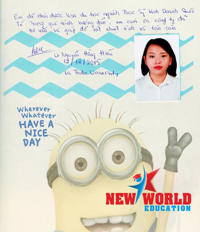 Em đã nhận được Visa du học Úc ngành Thạc sỹ kinh doanh quốc tế. Trong quá trình hướng dẫn, Em cảm ơn công ty đã tư vấn và giúp đỡ rất nhiệt tình và tận tâm.