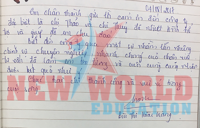 Biết đến công ty qua một sự nhầm lẫn nhưng chính sự chuyên nghiệp, nhanh chóng của nhân viên tư vấn đã làm em tin tưởng và cuối cùng cũng nhận được kết quả như ý.