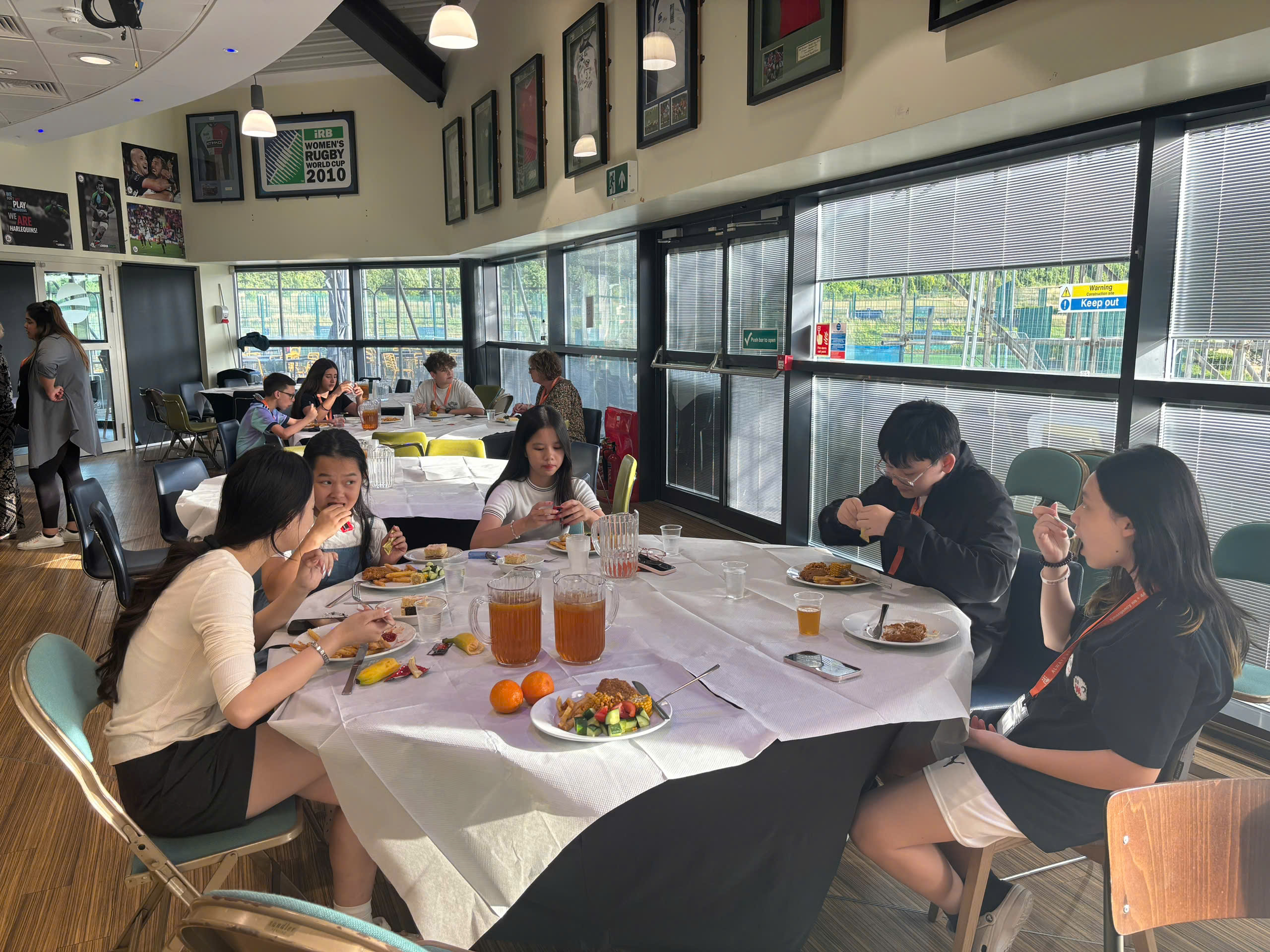 Về ăn uống: Căn-tin trong trường & bữa trưa cuối tuần. Lưu ý: Chương trình sẵn sàng đáp ứng các yêu cầu chế độ ăn uống đặc biệt (ăn chay, kiêng một loại thịt vì lý do tôn giáo, không thể hấp thụ gluten, dị ứng hạt, v.v...).