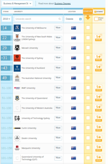 QS World University Rankings by Subject 2018 - Business & Management Studies