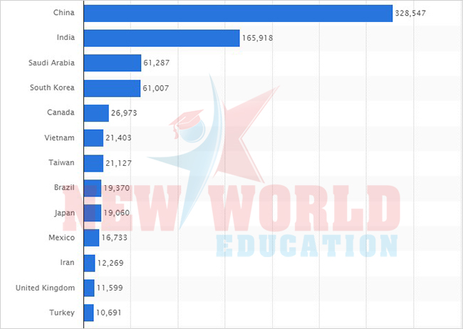 Việt Nam đứng vị trí thứ 6 trong tổng số 28.883 sinh viên đang học tại các cơ sở ở Hoa Kì hầu hết là các trường cao đẳng và đại học, cũng như các trường nội trú và trường học giảng dạy hệ chính quy.
