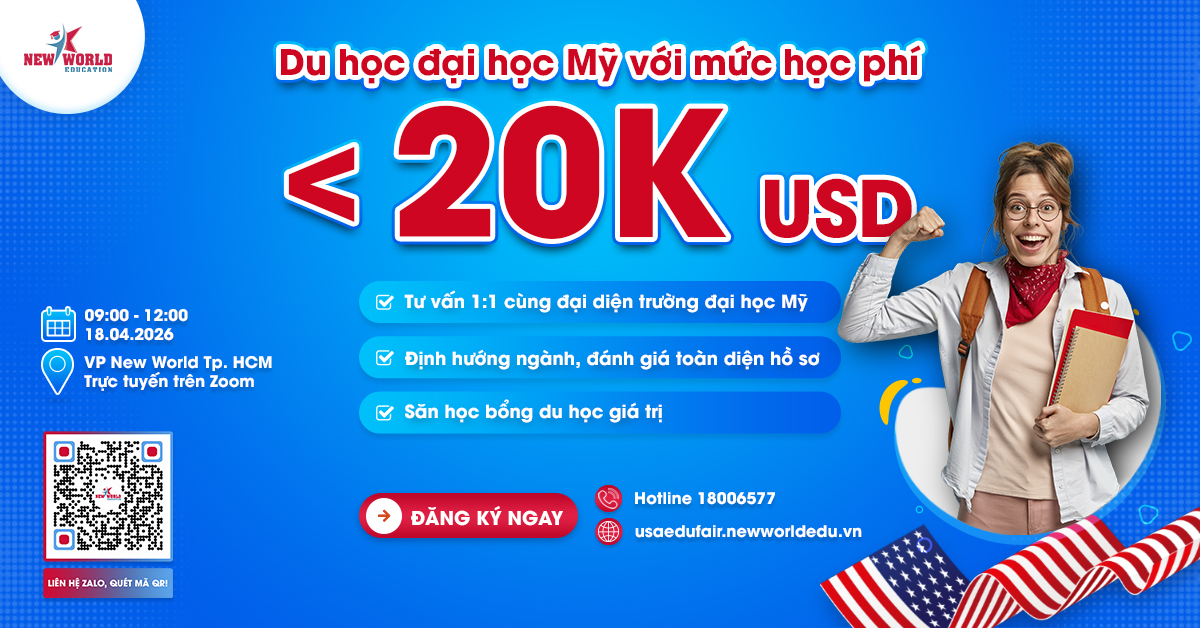 1.      Cập nhật thông tin du học Mỹ 2026 và danh sách Đại học chất lượng với học phí ≤ 20.000 USD/năm