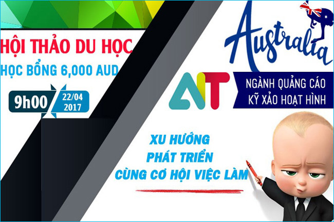 | Nhằm giúp quý vị phụ huynh và các bạn học sinh, sinh viên hiểu rõ hơn về Academy of Information Technology. New World Education và Academy of Information Technology tổ chức chương trình hội thảo và giải đáp thắc mắc: 1. Vì sao bạn nên lựa chọn ngành quảng cáo và kỹ xảo hoạt hình tại Úc? 2. Du học ÚC tại AIT có lợi gì cho bạn? 3. Cơ hội săn học bổng 6.000$ từ AIT Khách mời: Ms. Nhung Huynh - Đại diện tuyển sinh AIT tại Việt Nam Thời gian: 09h00, ngày 22 tháng 04 năm 2017 |