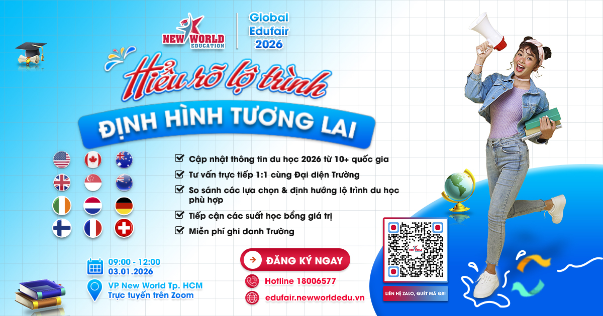 Lưu ý: Chương trình áp dụng có điều kiện & số lượng có hạn. Vui lòng liên hệ chuyên viên tư vấn New World Education để biết thêm chi tiết.