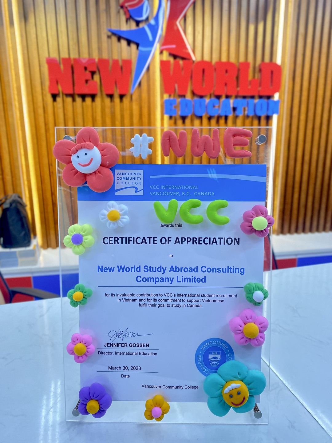 • Certificate of Appreciation 2023 từ Vancouver Community College VCC, Canada